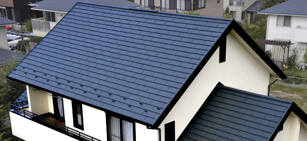屋根材と断熱材をひとつにした独⾃の材料構成により、軽量で抜群に優れた遮熱性・断熱性を発揮する⾦属屋根材です。